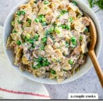 This tuna pasta salad recipe is creamy and satisfying! It’s a protein-packed quick and easy dinner or make ahead lunch.