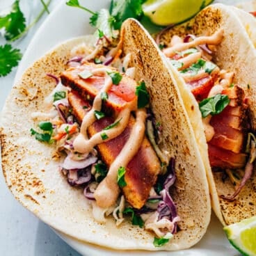 This perfectly seared tuna steak is ideal as an easy weeknight dinner—it’s one of my favorite protein-packed pescatarian recipes! Here are my expert tips for cooking this tasty fish and top ideas for ways to serve it.