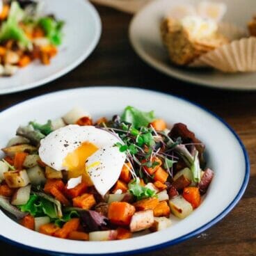 If you make this two-potato hash and soft boiled eggs, we’d love to hear how it turned out. Leave a comment below or share a picture and mention @acouplecooks on Facebook or Instagram.