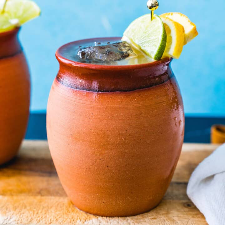 The Cantarito is similar to a Paloma, but it’s got more citrus juices like orange, lemon and lime juice. Layer it in a traditional clay cup, and the effect is stunning: it’s a light and refreshing drink that tastes even better sipped out of a cold clay rim.