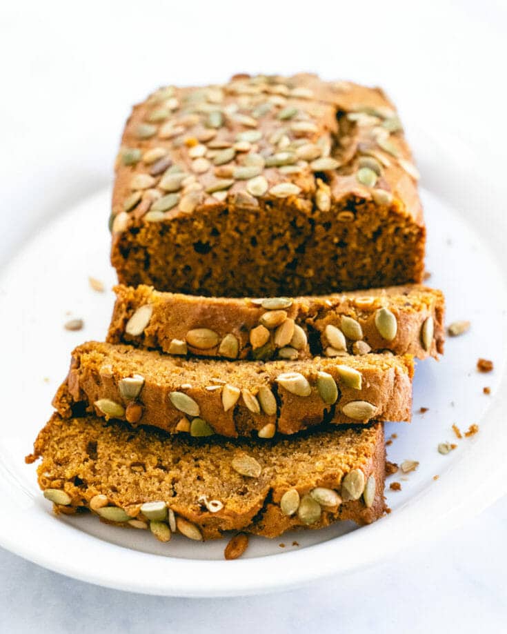 This vegan pumpkin bread is the ultimate in cozy. It’s perfectly moist and intensely pumpkin spiced. Even better, it’s light and fluffy: so you get your pumpkin spice fix without it being overly heavy or rich. Yes, it’s a seriously good pumpkin bread that happens to be plant-based too!