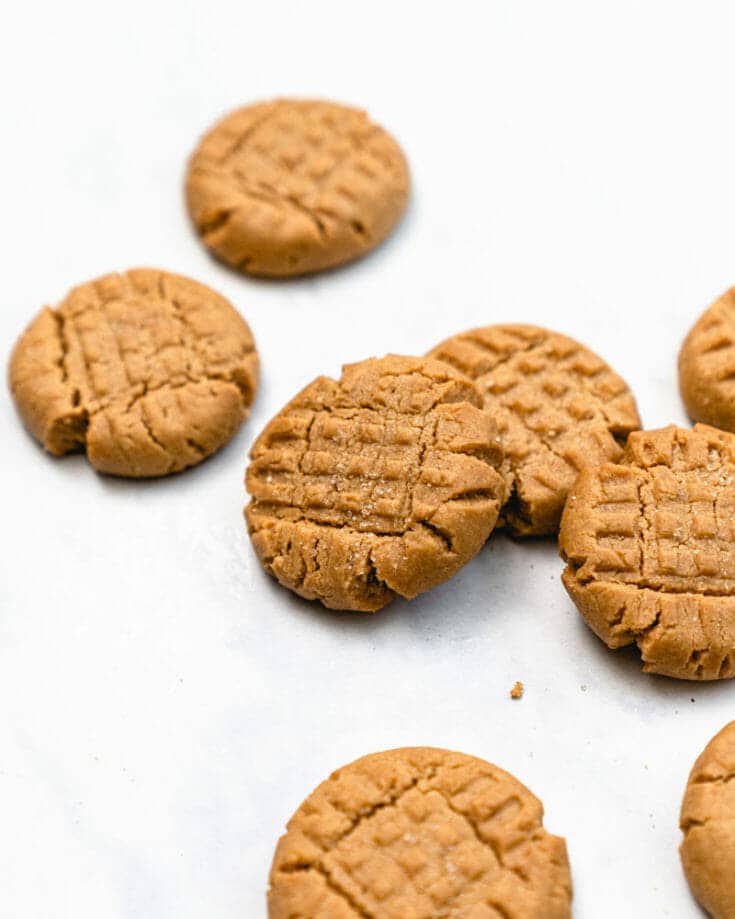 It’s cookie time! What’s your ultimate cookie? These vegan peanut butter cookies are where it’s at for Alex and me. They’re soft but perfectly crumbly, and salty sweet. Decorated with the classic criss-cross pattern, they’ve got a sparkle of sugar. If you'd like, add our chocolate icing drizzle, which makes them look even more fun.