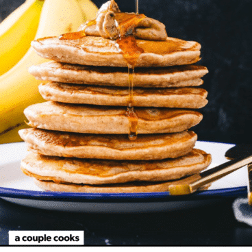 This vegan banana pancakes recipe is vegetarian, vegan, plant-based, and dairy-free. For gluten-free, go to Gluten Free Banana Pancakes.