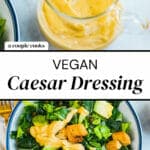 Here’s a vegan salad dressing so creamy, umami-packed, and irresistible, you might like it better than the original. Meet meet your perfect Vegan Caesar Dressing! You won’t believe the flavor here: it’s just as satisfying as a classic Caesar, no Parmesan, mayo or anchovies required. All you need is 5 minutes and a blender! Add it to a vegan Caesar salad with capers, avocado and croutons, and it’s a total crowd-pleaser, no matter your diet!