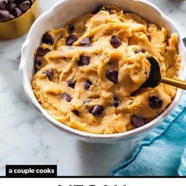This vegan cookie dough recipe is vegetarian, vegan, plant-based, and dairy-free. For gluten-free, use almond flour.