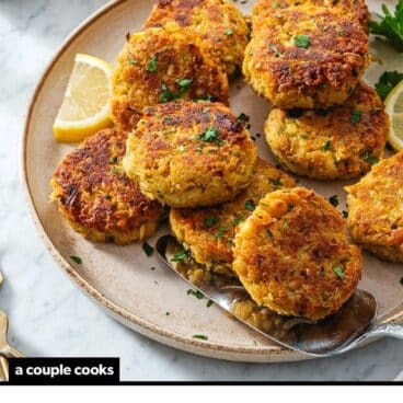 This vegan crab cake recipe is vegetarian, plant-based, and dairy-free.