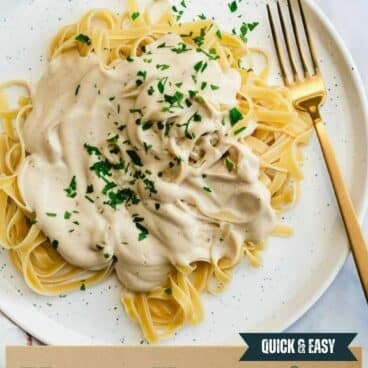This vegan fettuccine alfredo tastes cheesy, but the creamy sauce is filled with healthy plant-based ingredients. It’s an easy dinner in under 30 minutes—a fan favorite that everyone loves!