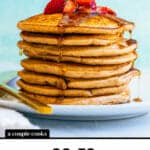 If you can’t use eggs or dairy, what do you use? There are lots of options, but we stumbled upon a trick that makes these taste fantastic. Here’s what’s in this vegan pancakes recipe: