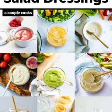 Making a salad and want it to be plant-based? Add a vegan salad dressing! Many salad dressing recipes rely on dairy for creaminess and flavor. But there are plenty of solid vegan choices that will make your salad sing! This list has a little bit of everything: tangy vinaigrettes, creamy sauces made with tahini, and vegan versions of classics like Caesar and ranch. Whatever the salad: we’ve got your dressing!