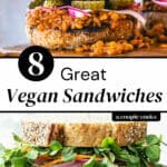 Here are all the best vegan sandwiches to try, full of irresistible flavor and healthy ingredients! There’s our fan favorite chickpea salad, like a vegan spin on chicken salad using chickpeas that takes just a few minutes to put together. Try vegan BBQ starring a special ingredient, or the most iconic vegan sandwich of all…the falafel sandwich.