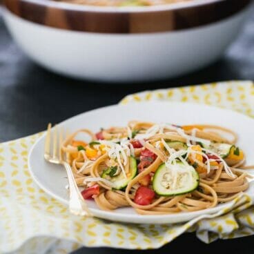 Because this vegetable linguine is made with lots of fresh veggies, it’s best enjoyed right away. Leftovers keep fairly well, but we’ve found that the tomatoes make the pasta a little gooey, and the zucchini loses its bite as well. Give this vegetable linguine recipe a try it you: