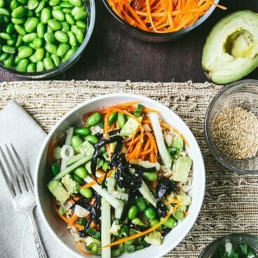 Outside of this vegan sushi bowl, here are some of our favorite healthy bowl meal recipes: