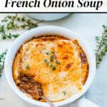 This vegetarian French onion soup is the ultimate comfort food! It’s got the rich flavor of the classic, topped with a golden crust of cheese.