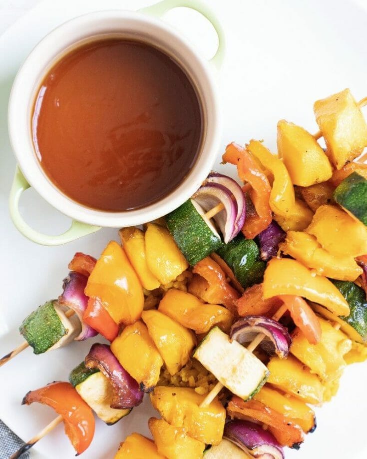 Veggie kabobs with a variety of colorful vegetables and a marinade of your choice