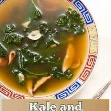 When making kale and mushroom soup, feel free to toss in whatever seasonal veggies you have on hand. This recipe doesn’t make a thick soup, so there’s room to throw in some extra ingredients. You’re also more than welcome to swap our the shitake mushrooms for button mushrooms, and the kale for spinach. Just make sure you cook the greens for only the last 5 to 10 minutes, otherwise they’ll become soggy.