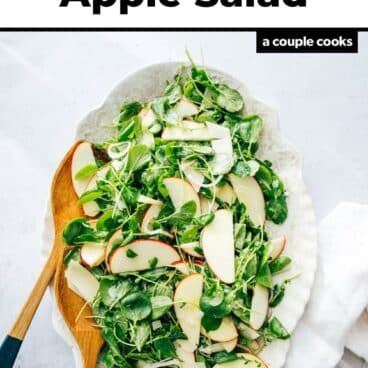 Got a load of leafy watercress? Here’s a great way to make this healthy green taste divine: Watercress Salad with Apple! Pair this bitter leafy green with lemon, apple and savory Parmesan shavings and you won’t be able to resist another bite! The sweet apple, zingy citrus and flaky salt balance out the watercress beautifully, making for a fresh and vibrant side dish. Here’s how to make it, and a bit more about working with this leafy green!