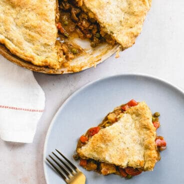 This winter vegetable pot pie is crazy delicious, with a flaky pot pie crust and a savory filling of veggies and Parmesan. Beat the season with this cozy meal!