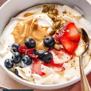 This yogurt bowl recipe is one of our top healthy breakfast ideas, and fits as a Mediterranean diet breakfast, vegetarian breakfast, and gluten free breakfast. Here are a few more fun and easy breakfast recipes:
